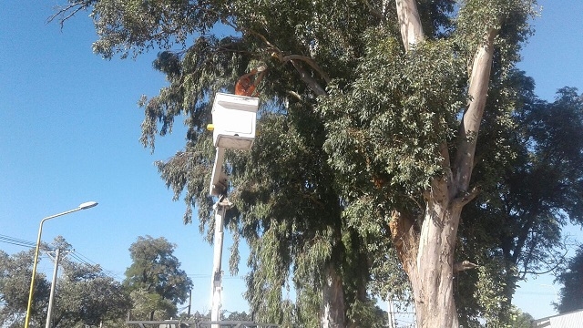 Con el fin de brindar mayor seguridad a todas las madres y mujeres que concurren con niños a la Maternidad Provincial “25 de Mayo”, el personal de Defensa Civil junto a la EC Sapem, quitó las ramas secas de los Eucaliptus caídas que se encontraban en inmediaciones del centro asistencial.