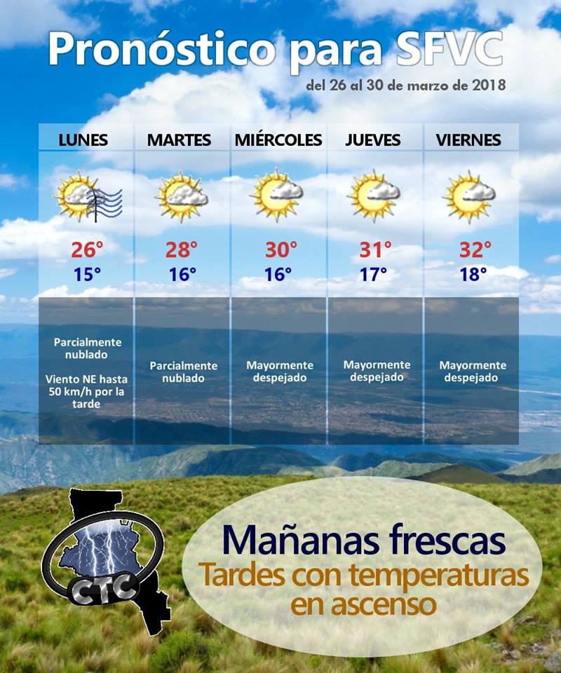 Seguirán las mañanas frescas, pero habrá un ascenso ya más notable de las temperaturas máximas: es posible que en localidades a baja altitud como Recreo o Esquiú, el martes se superen los 28° y el miércoles los 30° en horas de la siesta/tarde.