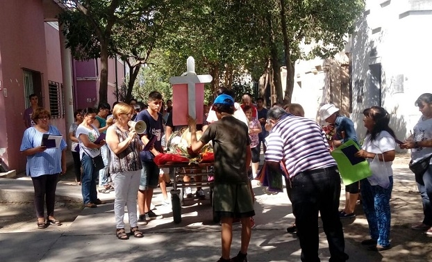 Los vecinos de barrios aledaños y aquellas personas que llegaron a visitar a sus seres queridos difuntos participaron del rezo de las distintas estaciones del Vía Crucis, concretado por las calles del cementerio.