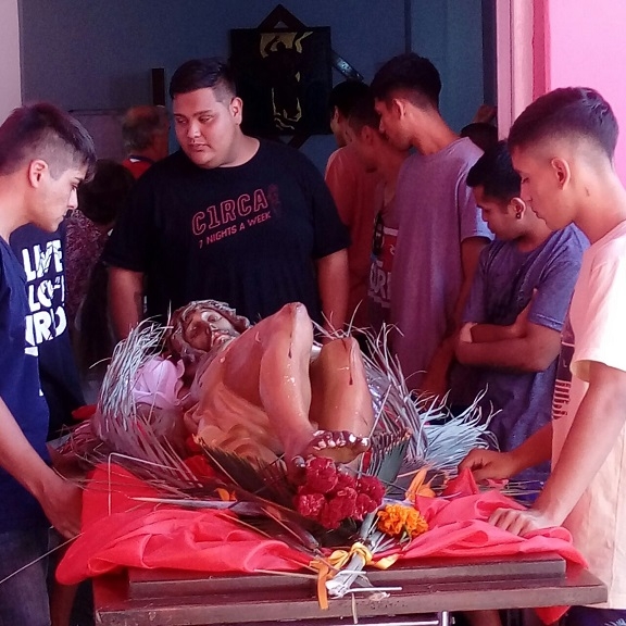 En el trayecto se leyeron reflexiones, se elevaron plegarias y cantos con la participación activa de la gente, en especial de los jóvenes que llevaron la imagen del Cristo yacente.