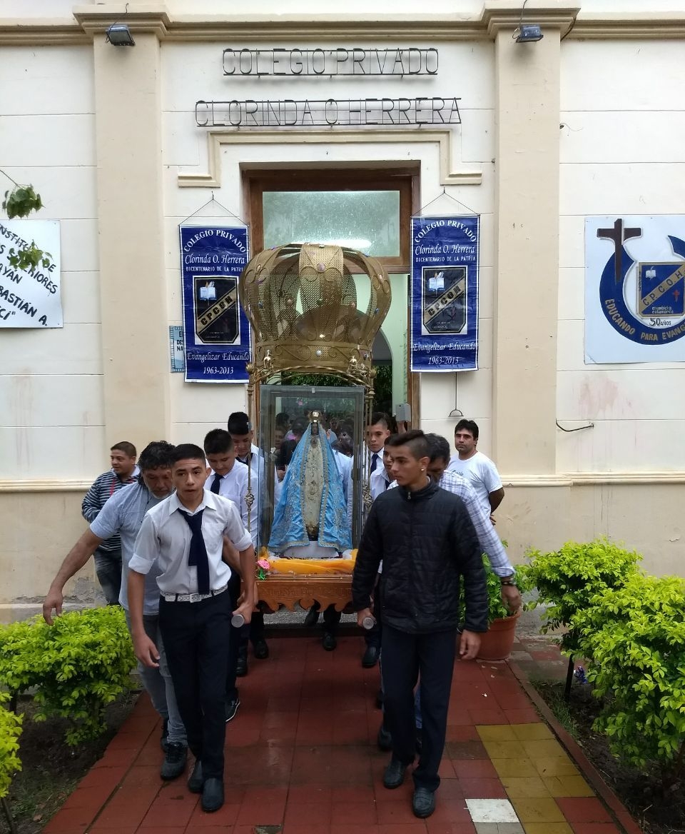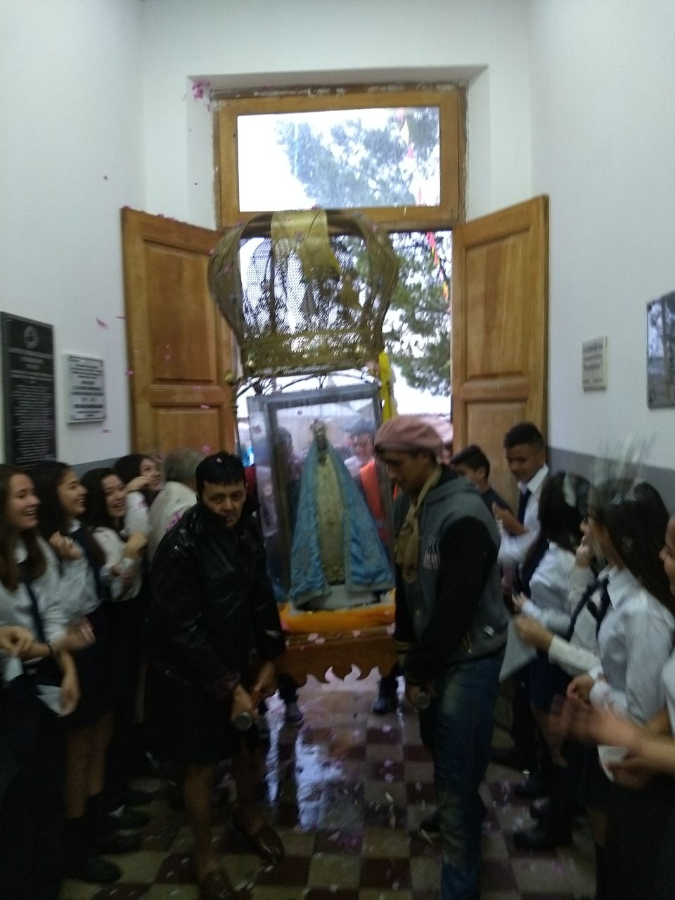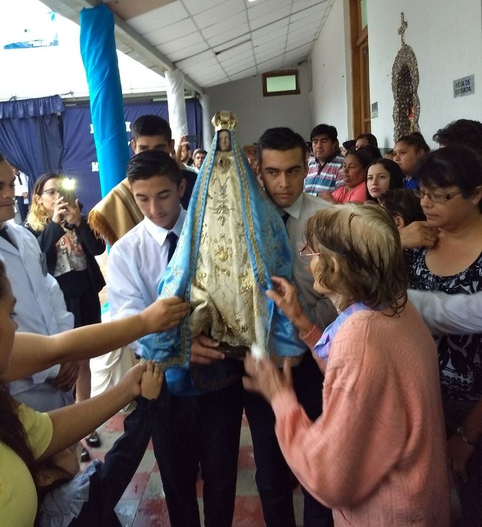 Por su parte, el apoderado legal del colegio, Pbro. Marcelo Amaya, dijo que “estamos disfrutando la presencia mariana”, y destacó el compromiso que “para que nuestra institución funcione con el perfil de la educación católica”.