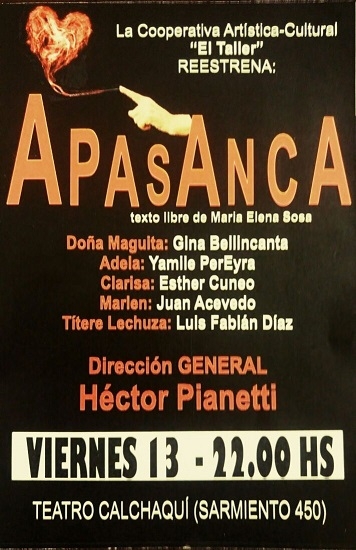 Completando con la ficha técnica: Sergio Reynoso y Gustavo Fabian Ponce - operación técnica, Eva Pianetti - prensa y difusión, Patricia Barros - fabricación de títeres, y María Elena Sosa - asistencia de dirección. Bajo la dirección general de Hector Pianetti.