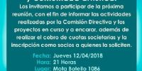 Asimismo, se procederá a cobro de la cuota societaria y, además, se recibirán solicitudes de inscripción para quienes deseen afiliarse a la institución.