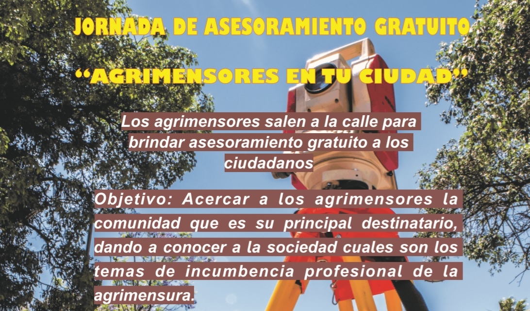 El 23 de este mes concretarán la Jornada de Asesoramiento Gratuito “Agrimensores en tu ciudad”. Se instalarán en la plaza “25 de Mayo”, de 9 a 18.