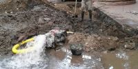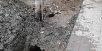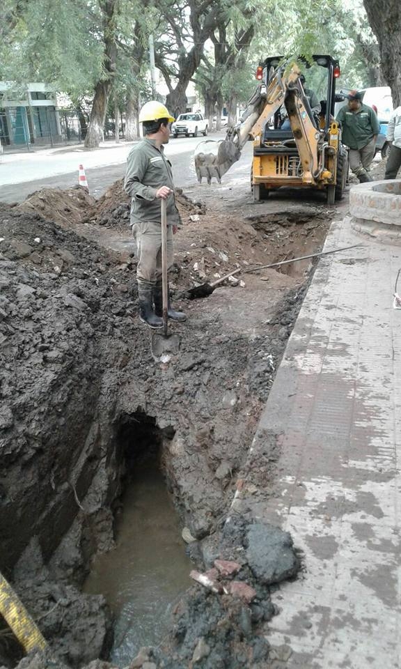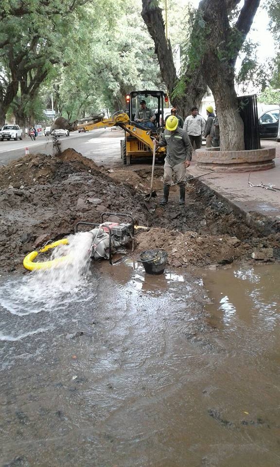 La empresa Aguas de Catamarca trabaja en la reparación de caño de advesto cemento de 200 mm. en Av. Presidente Castillo y D. Cobarrubias, en Villa Dolores, Valle Viejo.