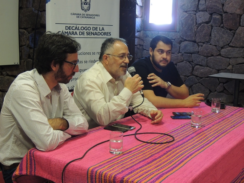 El presidente provisorio del Senado, Jorge Solá Jais, el tenor catamarqueño Nicolás Romero y el maestro concertista Matías Chapiro brindaron una conferencia de prensa en el salón auditorio del Hotel Belén para informar sobre lo que será el primer concierto lírico en el Shincal de Quimivil, ubicado en la localidad de Londres, departamento Belén.