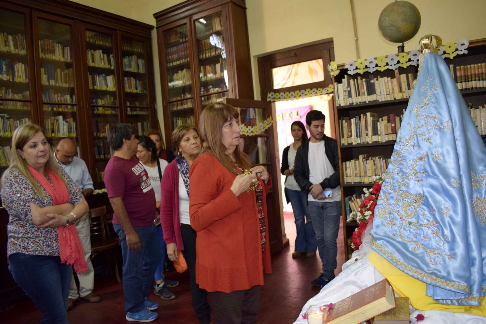 La Directora de Bibliotecas y Archivo, Alejandra Agüero Saavedra, participó junto a todo el personal del rezo del Santo Rosario y los cánticos que de manera espontánea surgieron en honor a la Madre Morena.