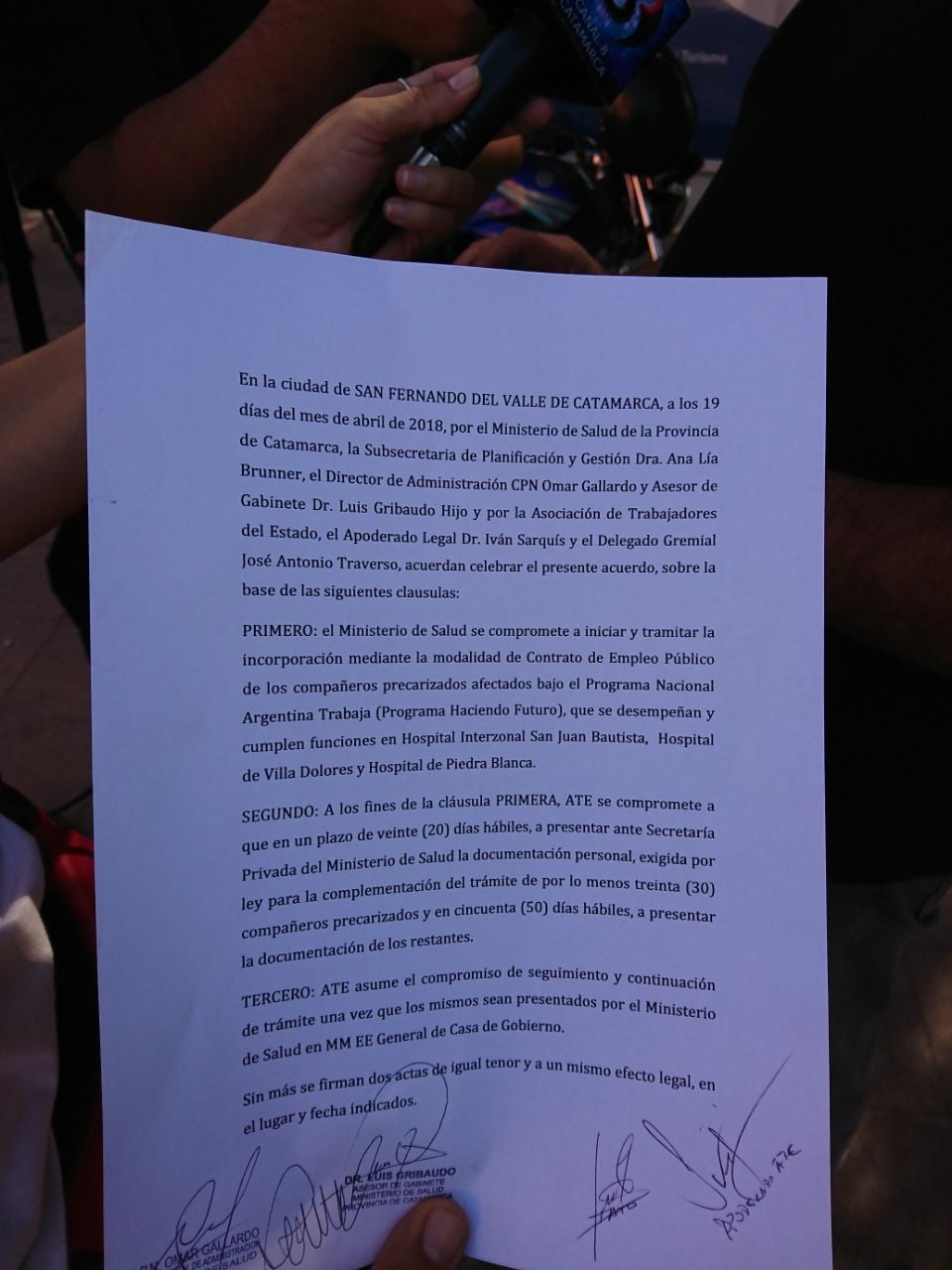 “El acuerdo consiste en que 30 compañeros precarizados del Argentina Trabaja tienen que presentar la documentación en 20 días, los cuales pertenecen a tres hospitales, y de acá a 50 días el resto”, señaló Traverso.