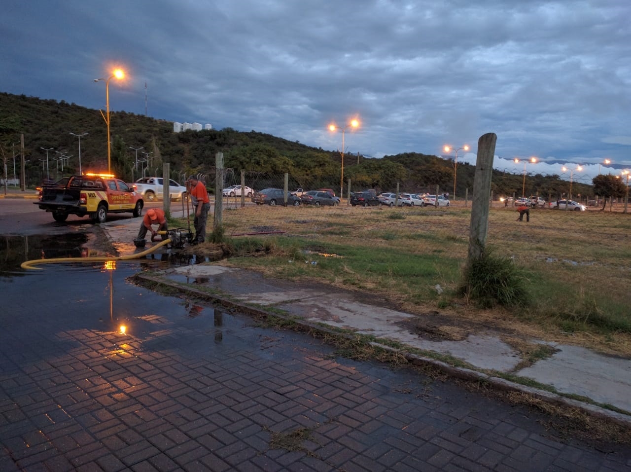 Los operarios, entre otras tareas, debieron retirar una importante cantidad de agua en el ingreso al Predio Ferial Catamarca y en la zona del CAPE.