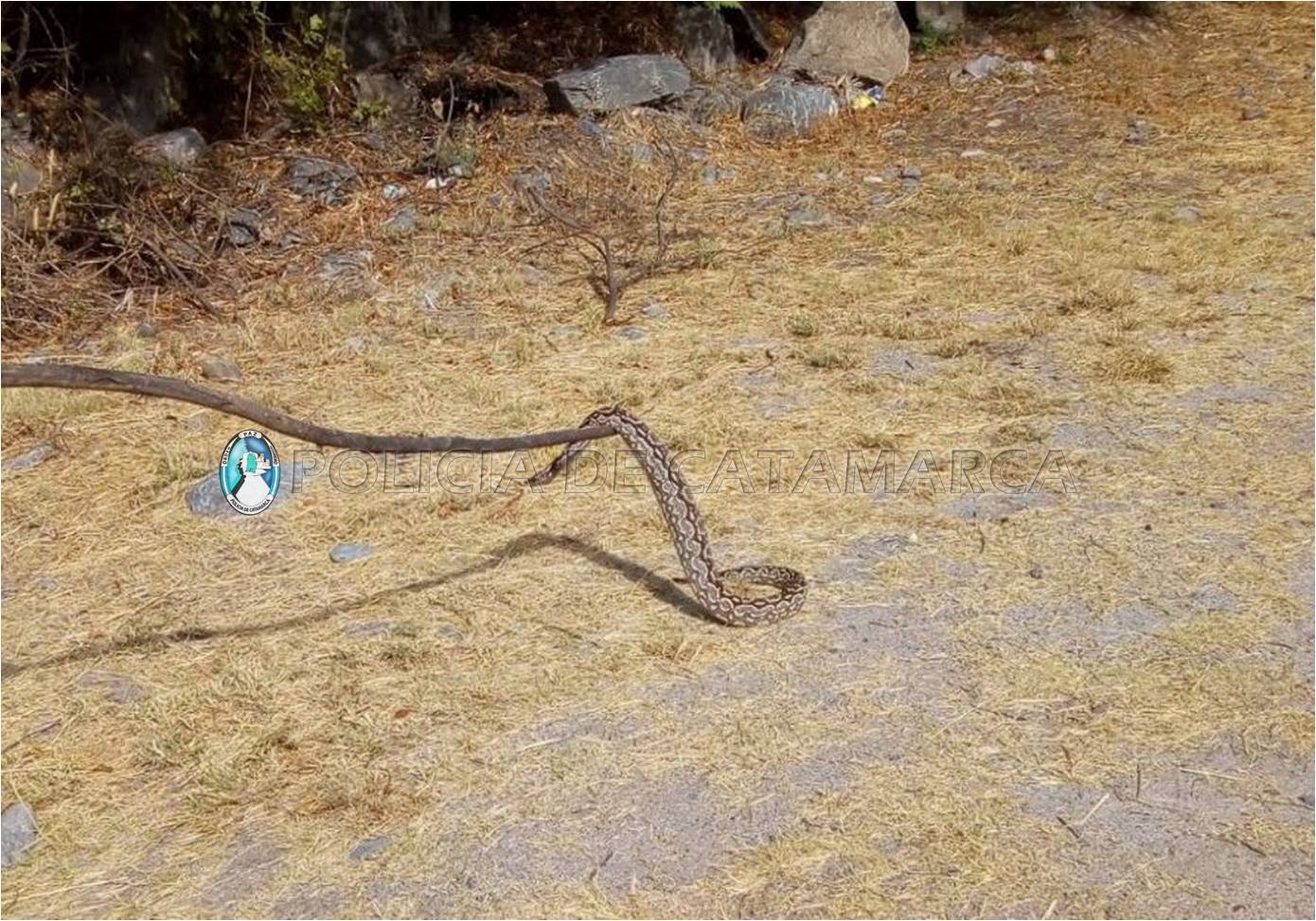 En el puesto caminero Las Rejas, ubicado sobre ruta provincial N° 4, los efectivos fueron alertados por transeúntes que en cercanías a los filtros de la empresa Aguas de Catamarca SAPEM, habrían encontrado una serpiente de grandes dimensiones.