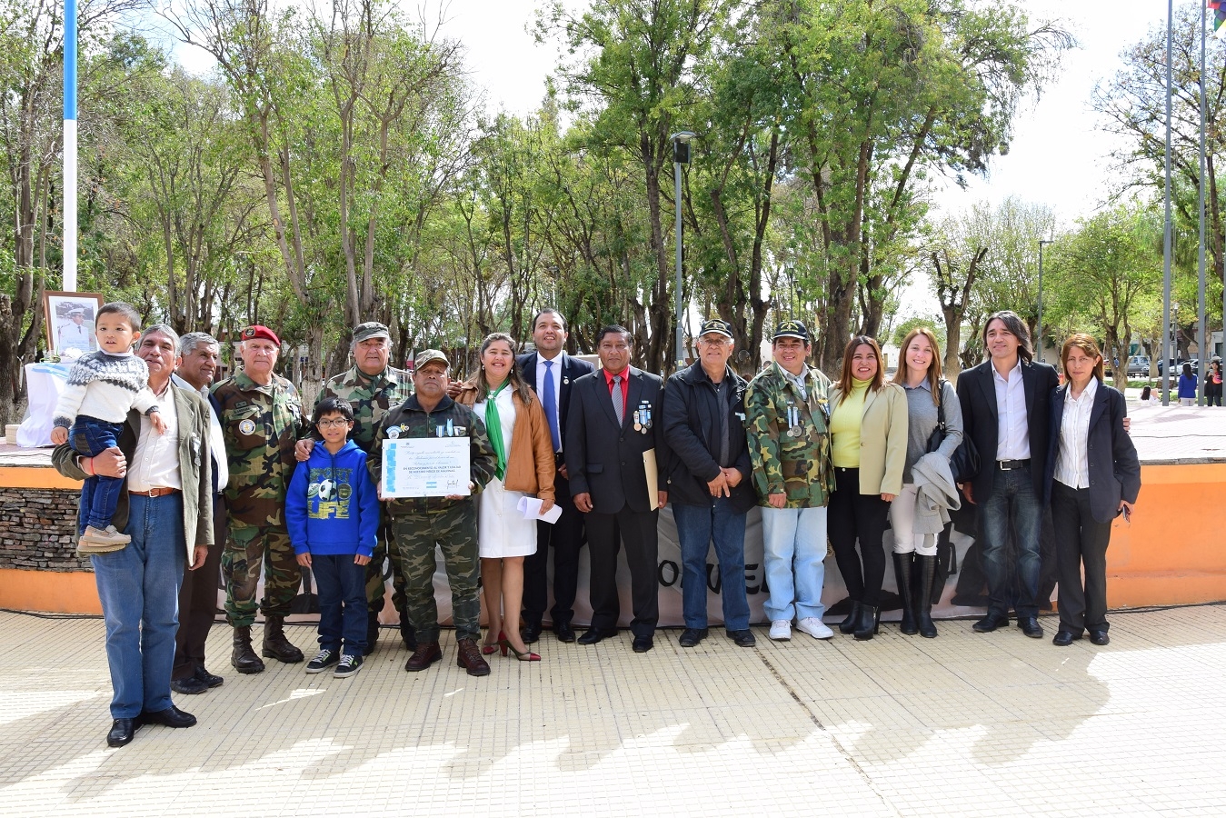 Las palabras alusivas estuvieron a cargo de la Prof. Analía Villagrán y del ex combatiente, Sr. Juan Pedro Rivero. Luego, el intendente, Juan Pablo Sánchez, junto a las autoridades presentes y ex combatientes, le rindieron homenaje y depositaron una ofrenda floral en la memoria del Cabo Primero Edmundo Federico Marcial.