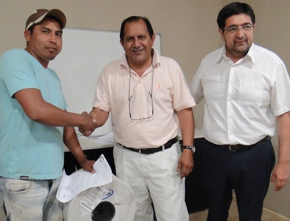 En el marco del Plan Hortícola Provincial, el ministro de Producción Daniel Zelarayán y el director de Extensión Rural Miguel Soria entregaron equipamiento para riego por goteo para la Asociación de Productores Hortícolas de Catamarca (APHORCAT), en la persona de su presidente Nelson Domingo Choque.