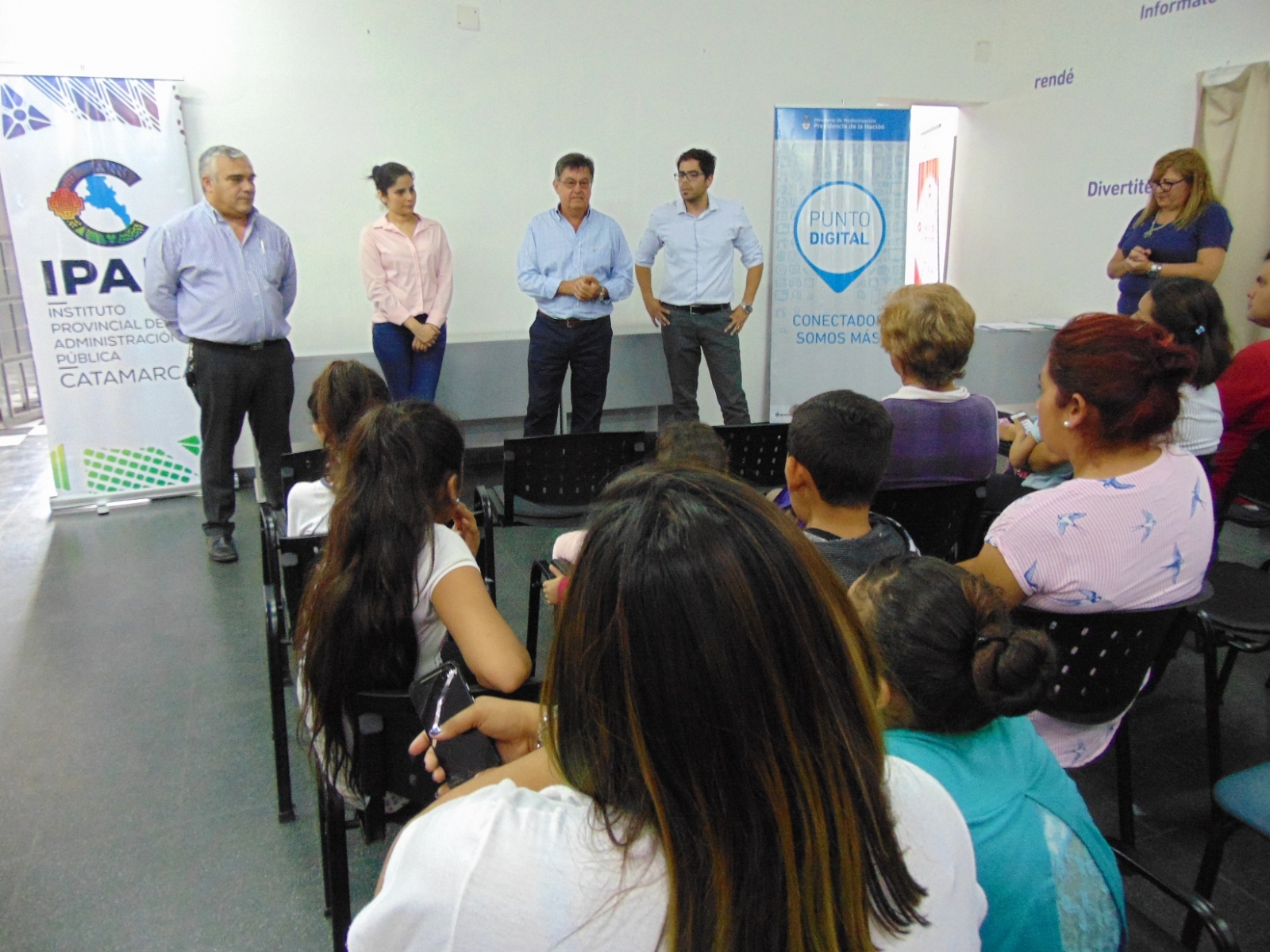 Acompañaron la entrega de certificados el secretario de Planeamiento y Modernización de la comuna, Aldo Sarquís; el director municipal de Recursos Humanos, Emilio Ramaci; la directora del IPAP, Sonia Aibar junto a uno de los docentes, Alejandro Centeno; y la responsable del Punto Digital, Graciela Correa.