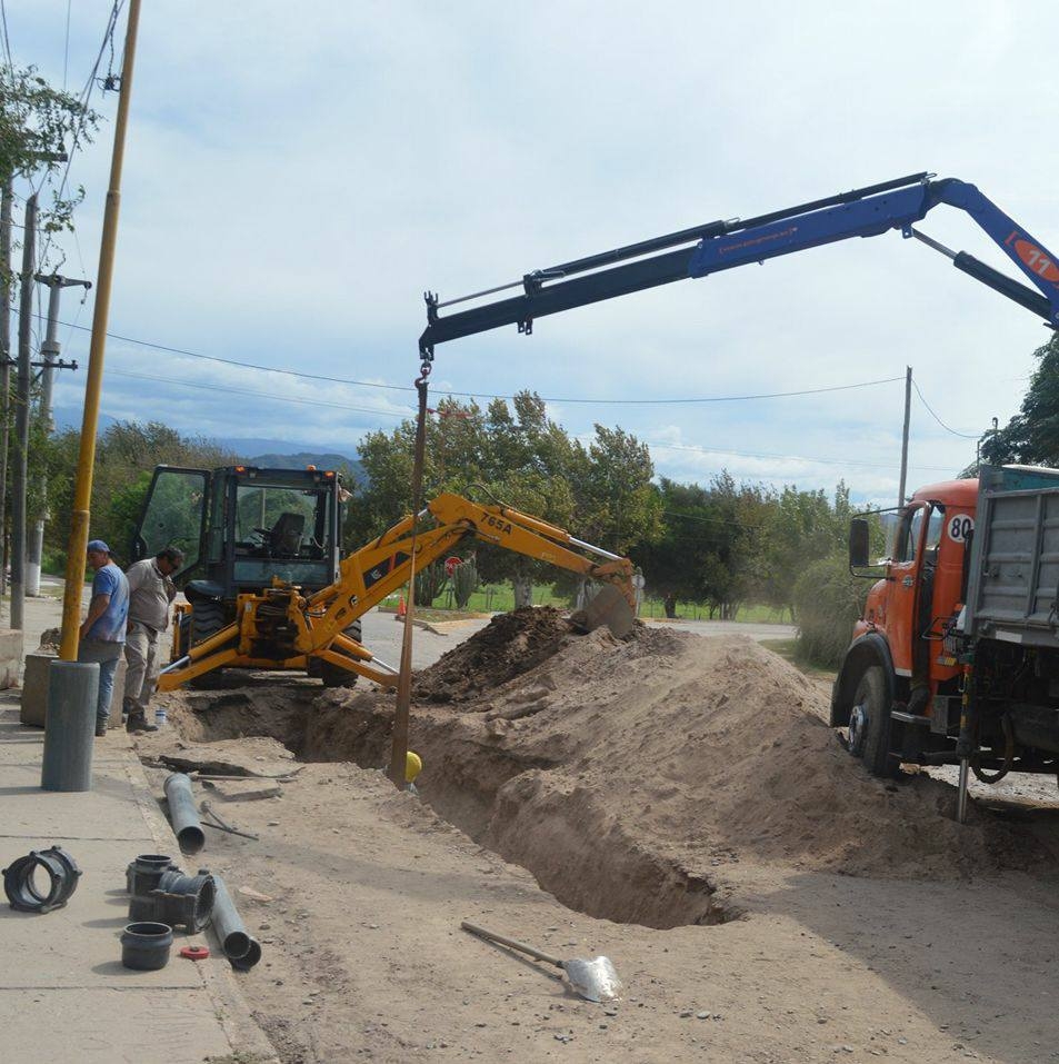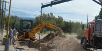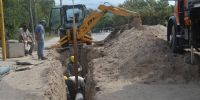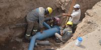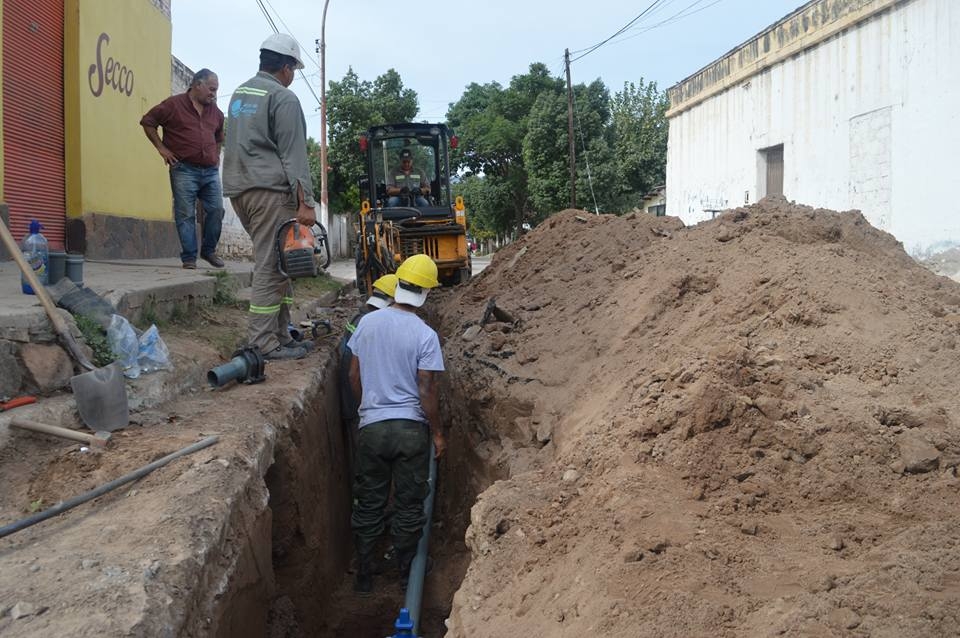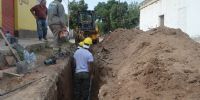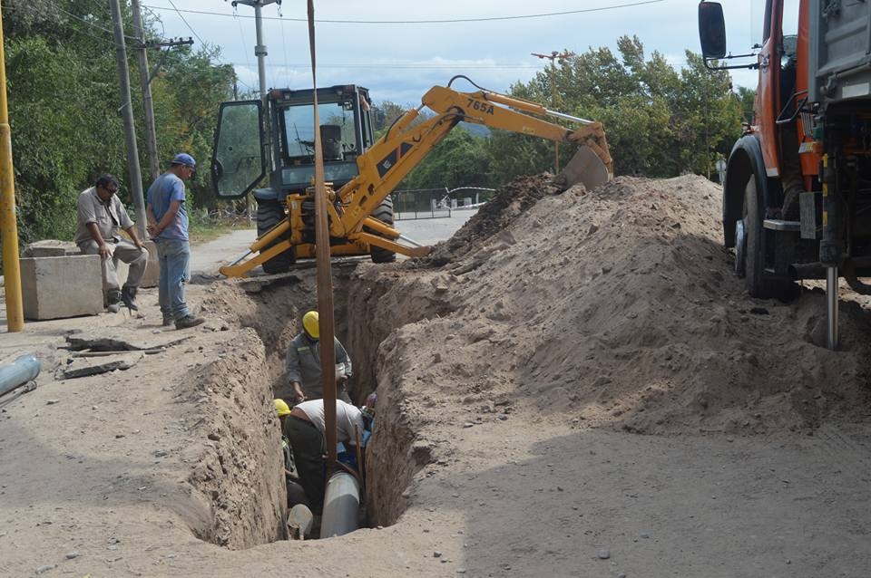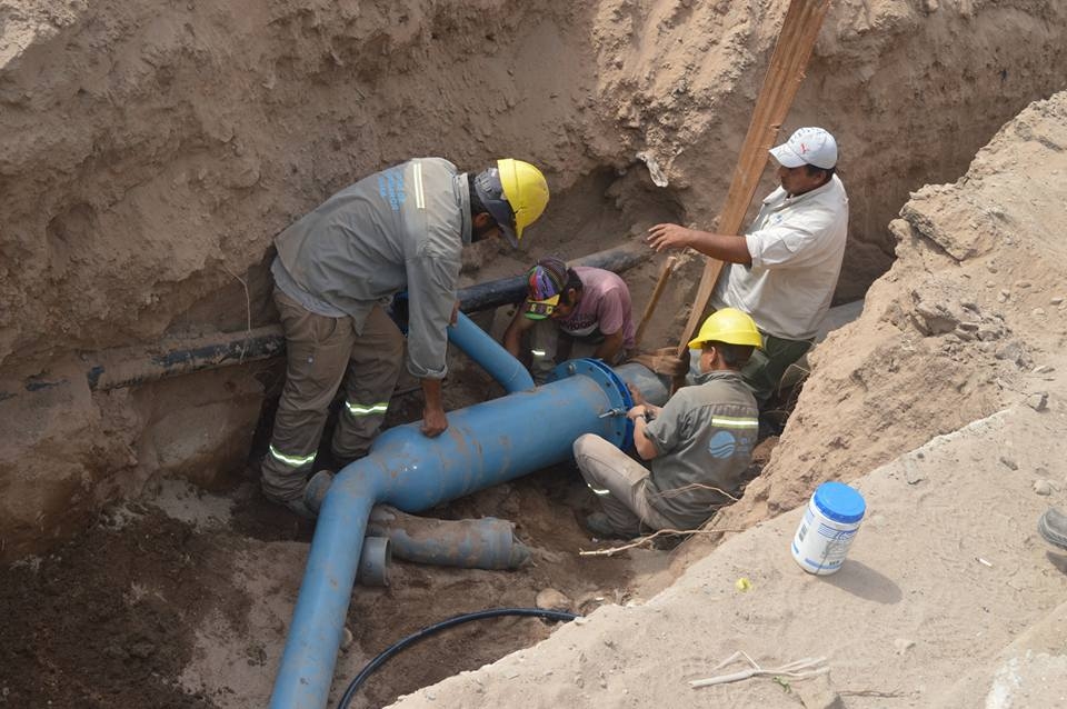 La empresa Aguas de Catamarca trabaja en la vinculación de los 1500 metros de cañería de PVC 315 mm. que reemplazamos en San Antonio, Fray Mamerto Esquiú.