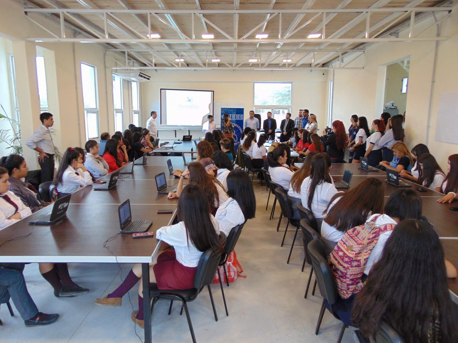 Luego todas las estudiantes presentes participaron de un taller de introducción a la programación con Scratch, un lenguaje de programación visual que les permitió, guiadas por facilitadores del PLANIED, crear animaciones y juegos.