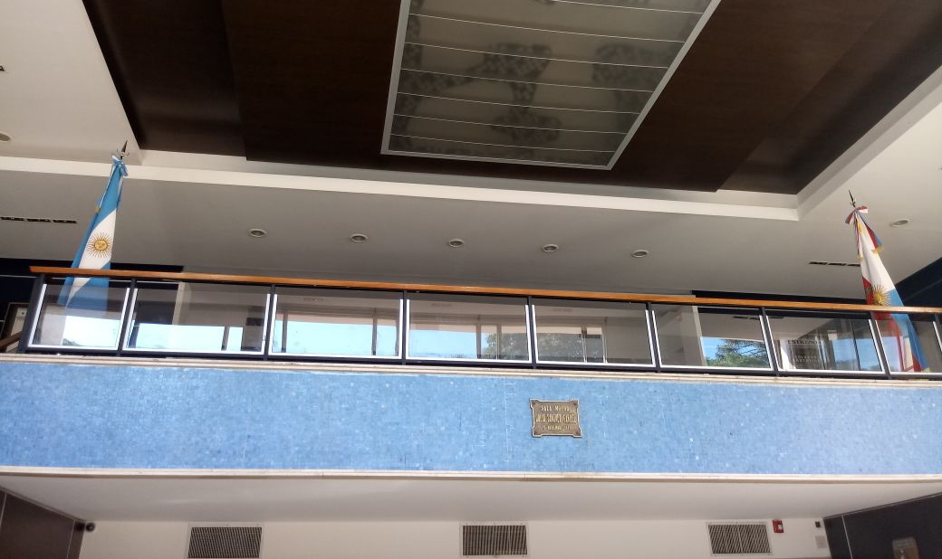 Las flamantes banderas ya lucen en el hall de ingreso a la Sala Mayor “Julio Sánchez Gardel” del Cine Teatro Catamarca, uno de los espacios culturales más importantes de la provincia.