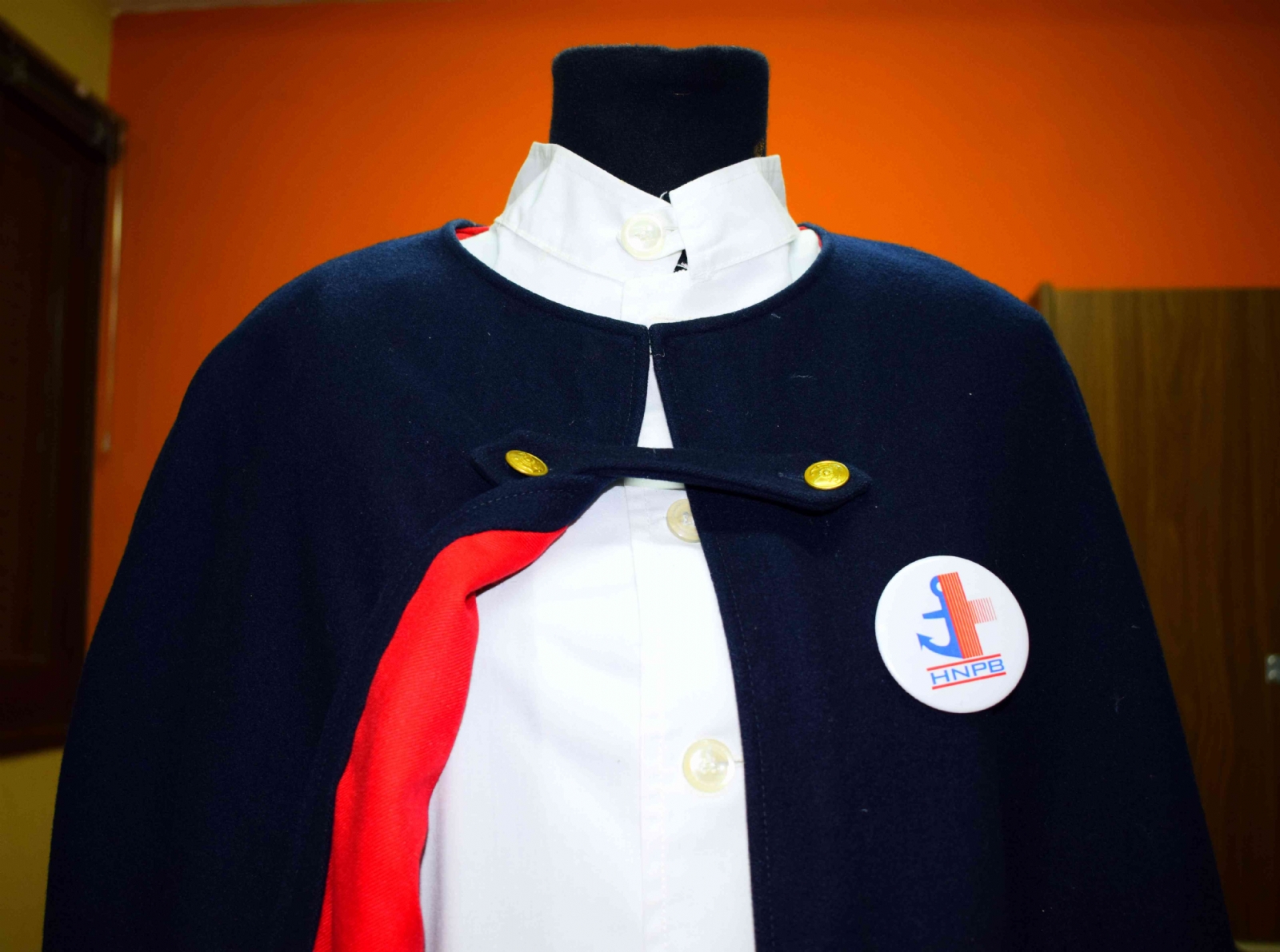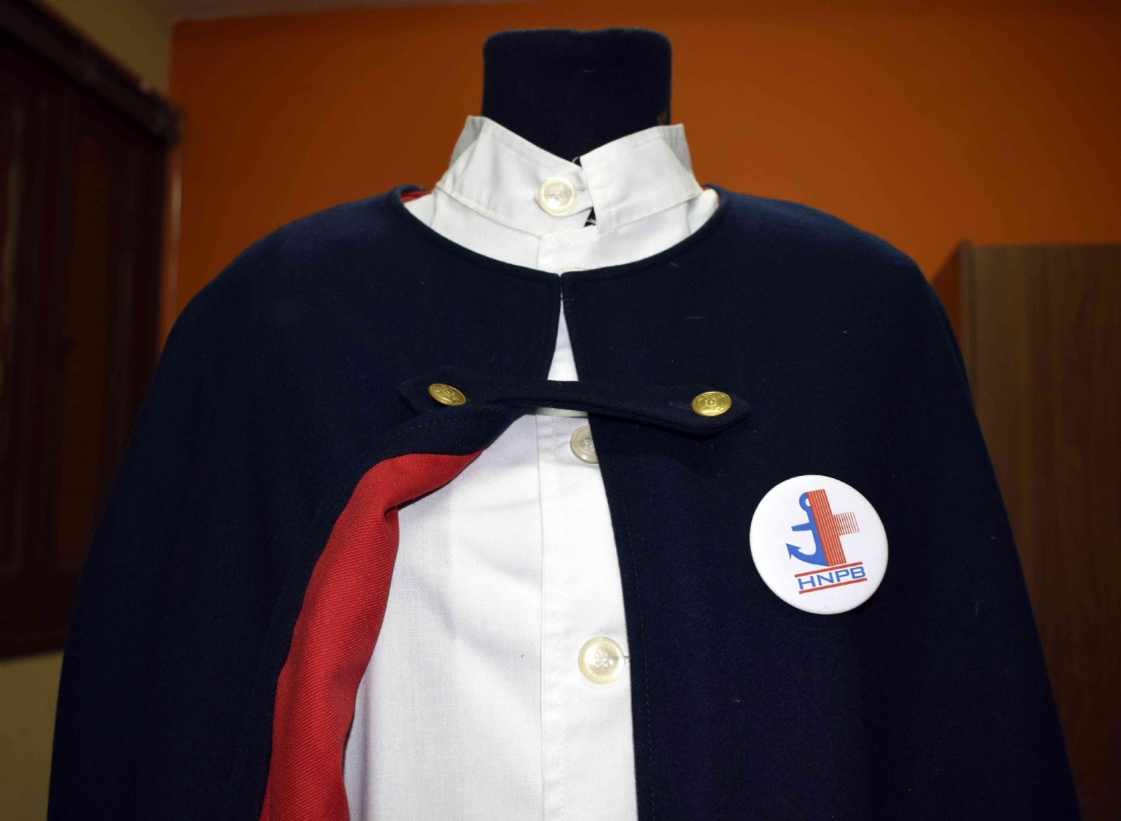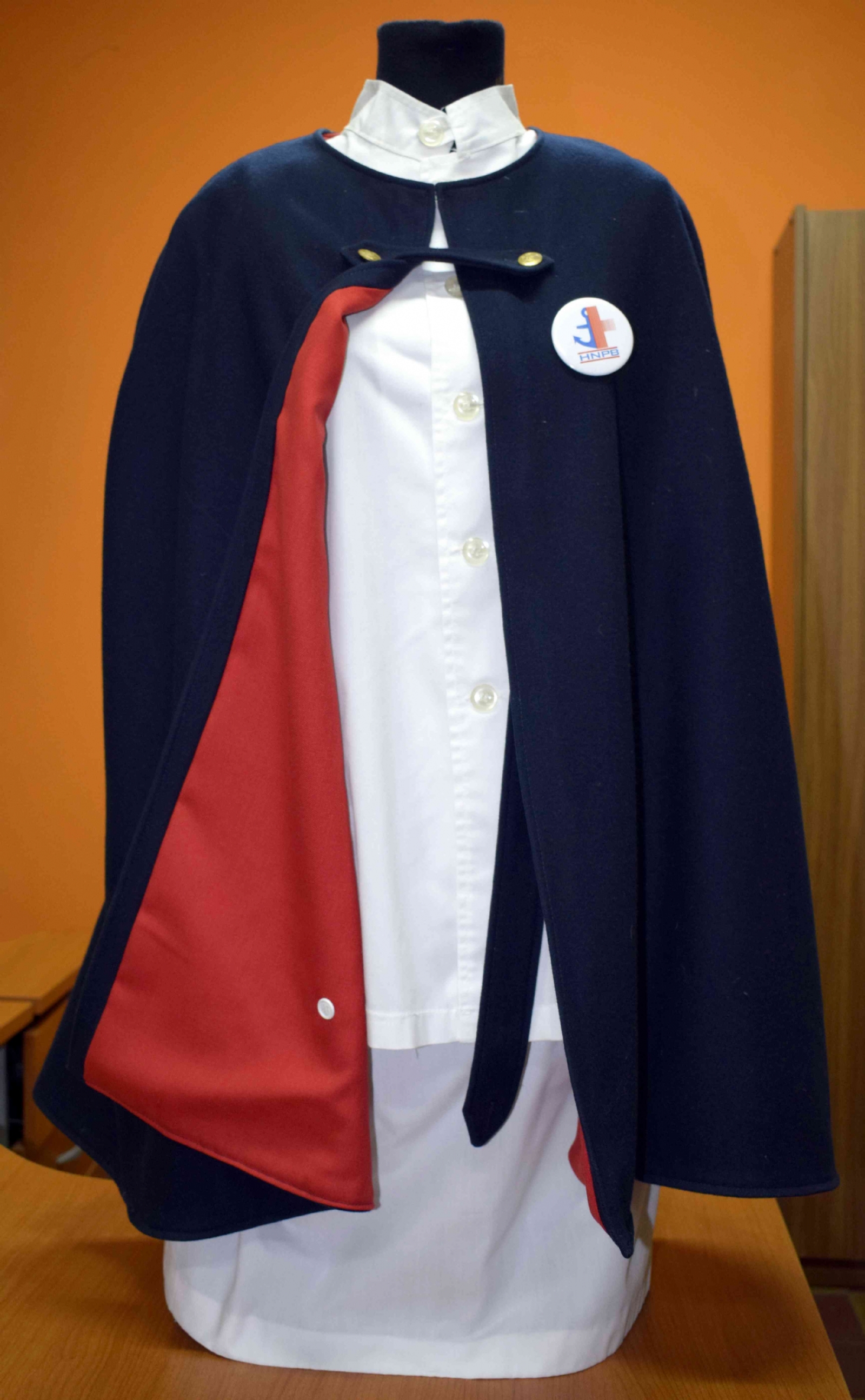 La capa forma parte del uniforme del hospital naval, era de tela de fieltro, por las bajas temperaturas, pues generalmente se hacían guardias de 24 hs. siendo las noches largas y frías. Estaba acompañada con un sencillo vestido de percal, zapatillas cómodas y un delantal de color blanco, como sinónimo de limpieza y pureza.
