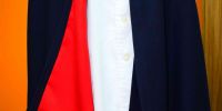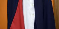Cuando se coloca con parte de la solapa hacia la izquierda significa país en guerra y cuando se usa con las dos solapas en forma triangular hacia atrás significa batalla perdida.