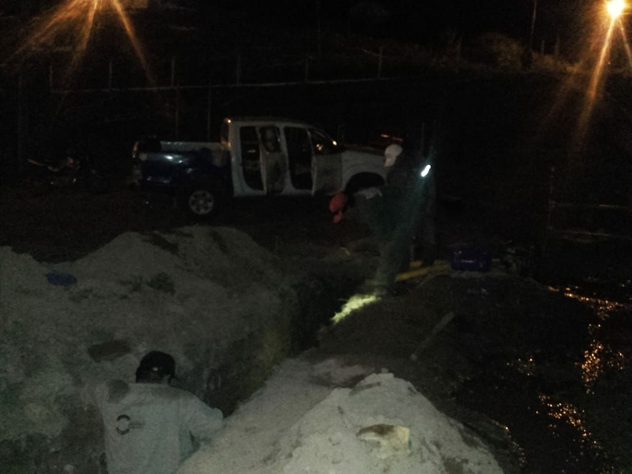 A esta hora siguen los trabajos, hasta que se finalicé con la nueva conexión. Se espera que mañana se normalice la provisión de agua potable en nuestra Ciudad.