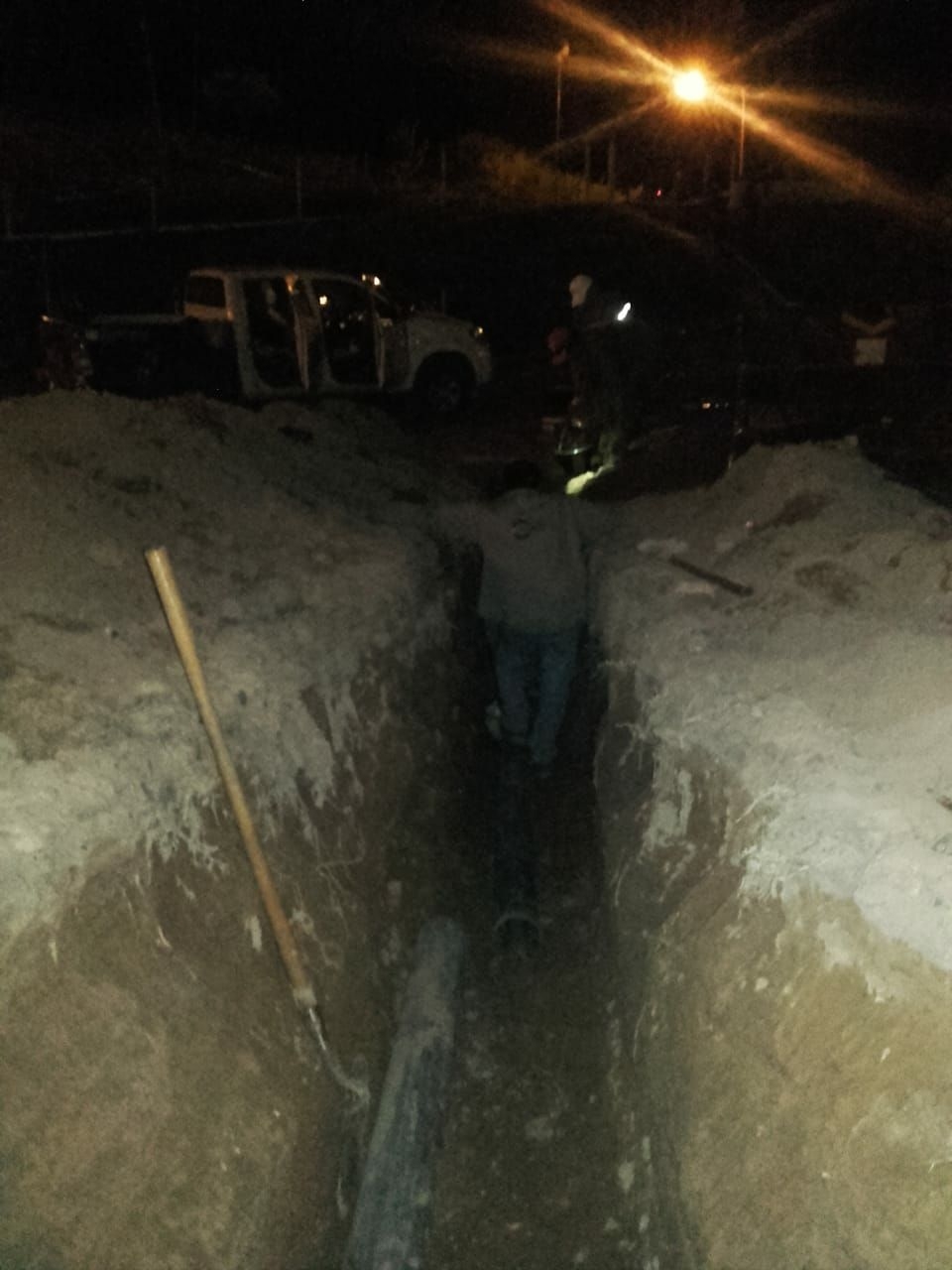 El trabajo desde horas tempranas obedece a una realizar una conexión nueva, a fin de abastecer de cañería para los barrios 30 Viviendas, Horminor y también al Kilómetro 969.