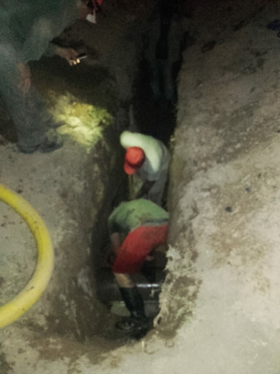 Dado el estado de uno de los caños que se encontró roto y aplastado, el recambio se realizará mañana viernes, para dejar normalizado el sistema.