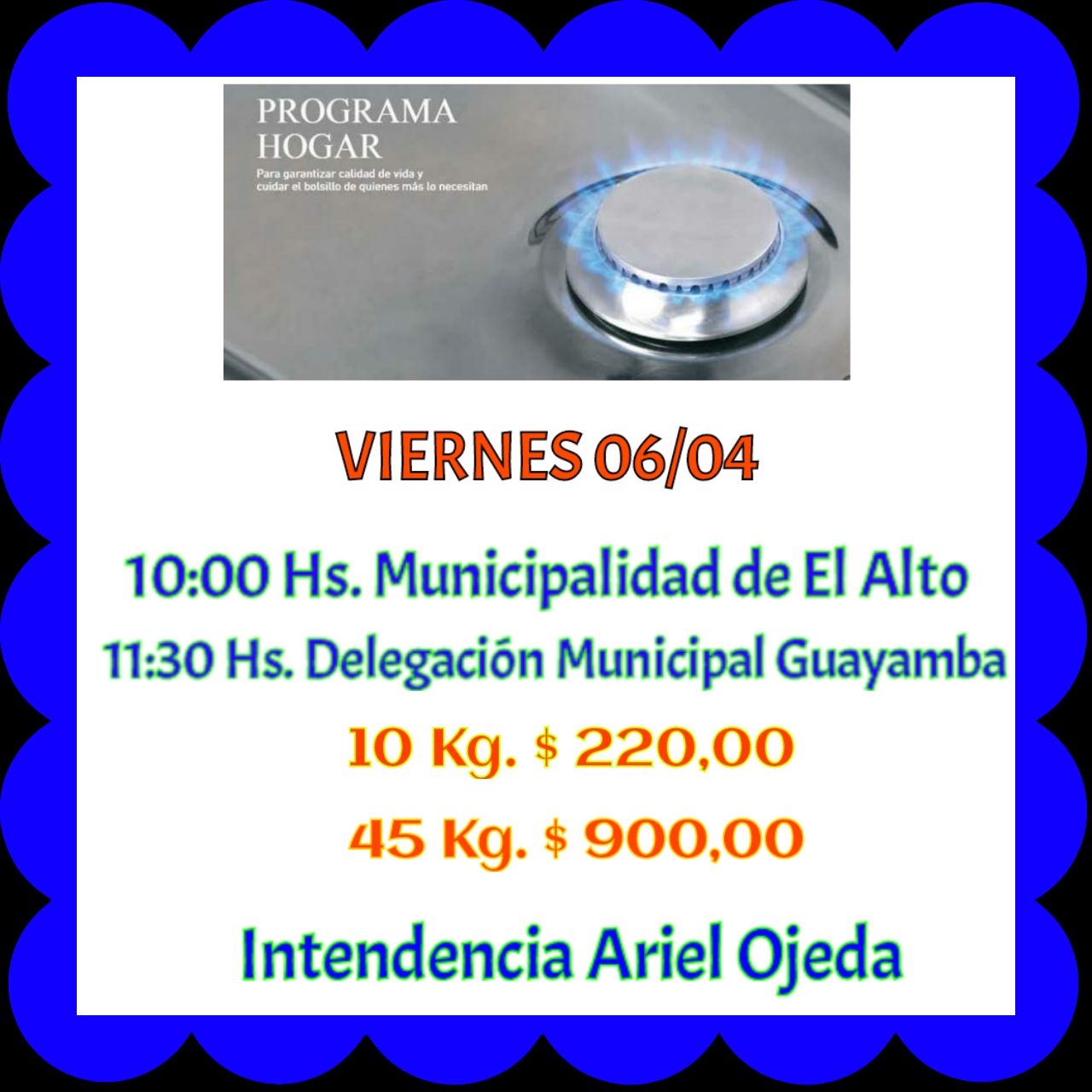 El precio vendrá actualizado, es decir, con aumentos, tanto la garrafa de 10 Kg. como el cilindro de 45 Kg.