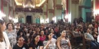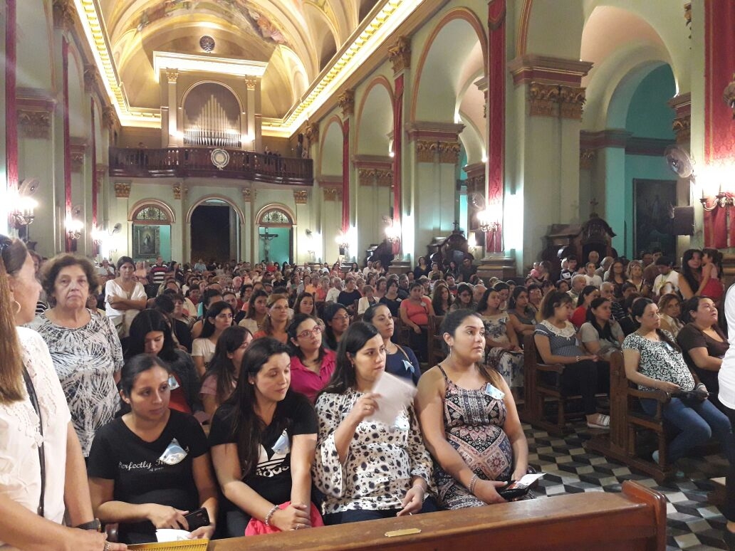 En la noche del domingo 8 de abril, primer día del Septenario, muchos niños y embarazadas, acompañados por sus familias, colmaron el Santuario Mariano para rendirle homenaje a la Virgen del Valle. Hubo alegría y entusiasmo durante toda la celebración.