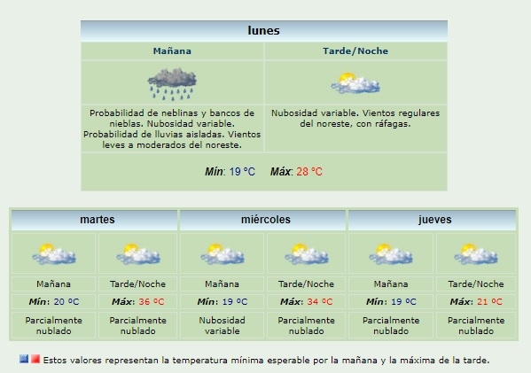 Para el miércoles, será similar que el día anterior. La máxima llegará a los 34°, mientras que la mínima será de 19°C.
