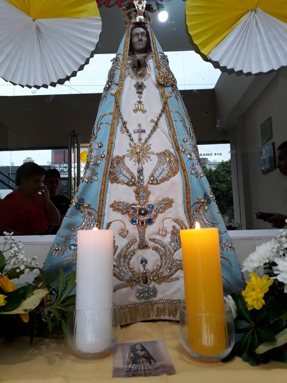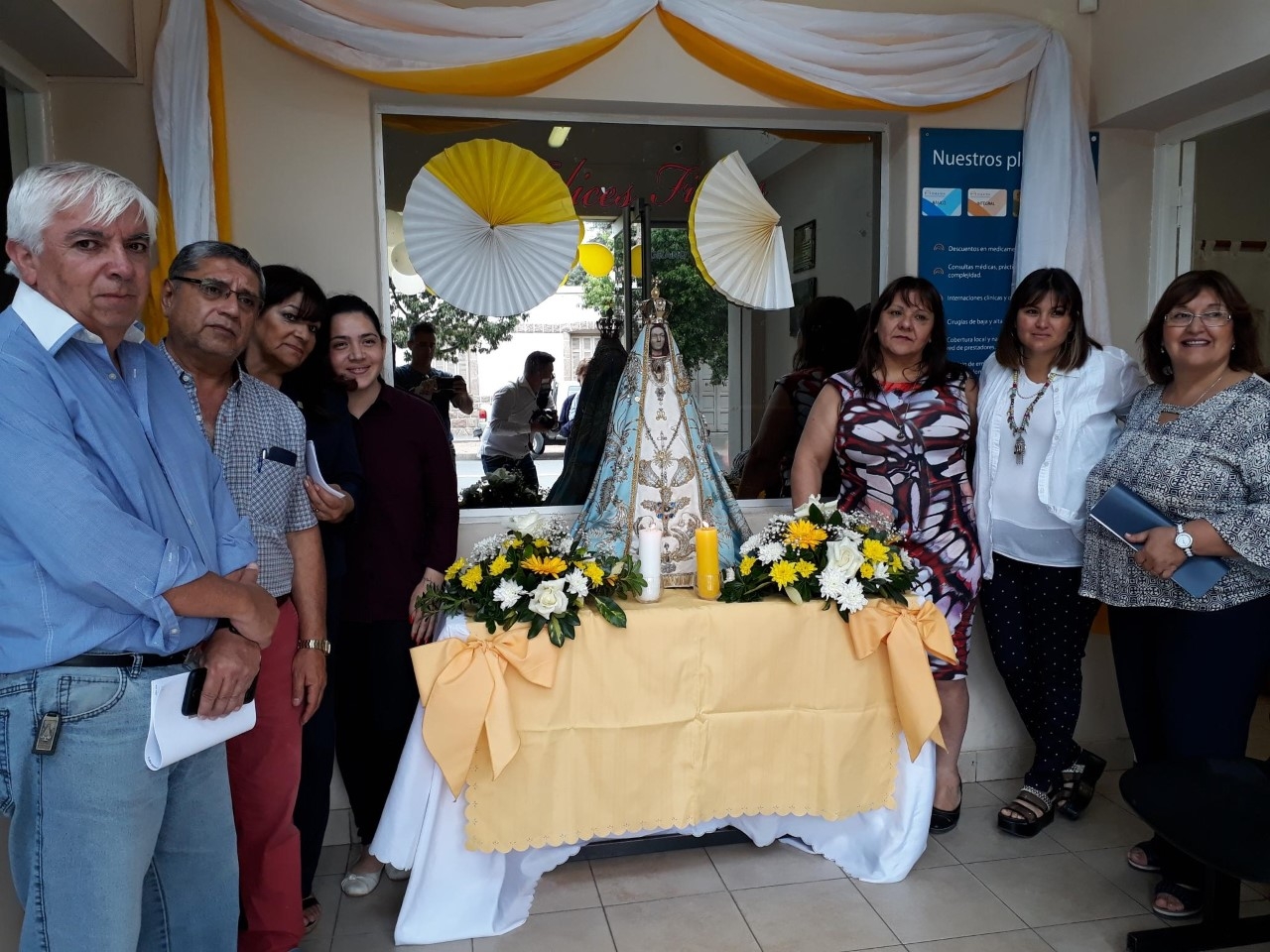 Acompañada por el sacerdote Julio Quiroga del Pino, la imagen fue recibida por la secretaria general de APUNCa, Gladys Moro, la Comisión Directiva y un importante número de Nodocentes, que llegaron para venerarla.
