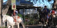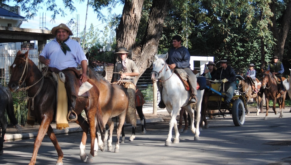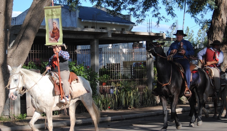 Los devotos lapaceños eran aguardados por representantes de distintas agrupaciones gauchas de Las Chacras, en el Monumento al Aborigen, en el centro Valle Viejo, y desde allí continuaron el paso hasta la sede de la Fiesta Graciana de la Tradición, aledaña a la Casa Natal del ilustre franciscano.