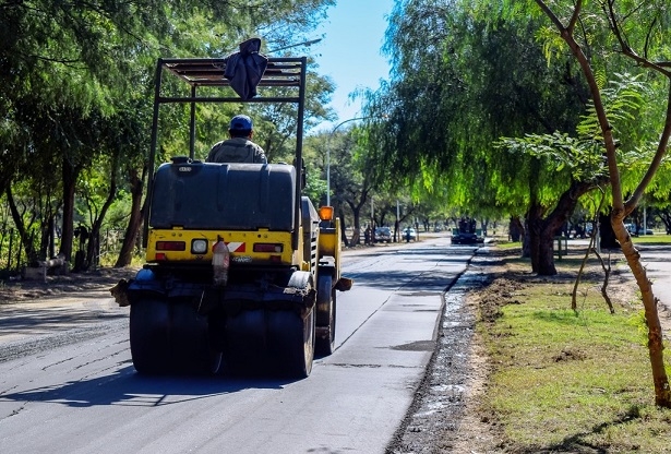 Actualmente, una cuadrilla de trabajadores de la secretaría de Obras Públicas realiza la pavimentación de la pista de ciclismo tras haber realizado la intervención de las caminerías y el inicio de las tareas para construir una nueva glorieta.
