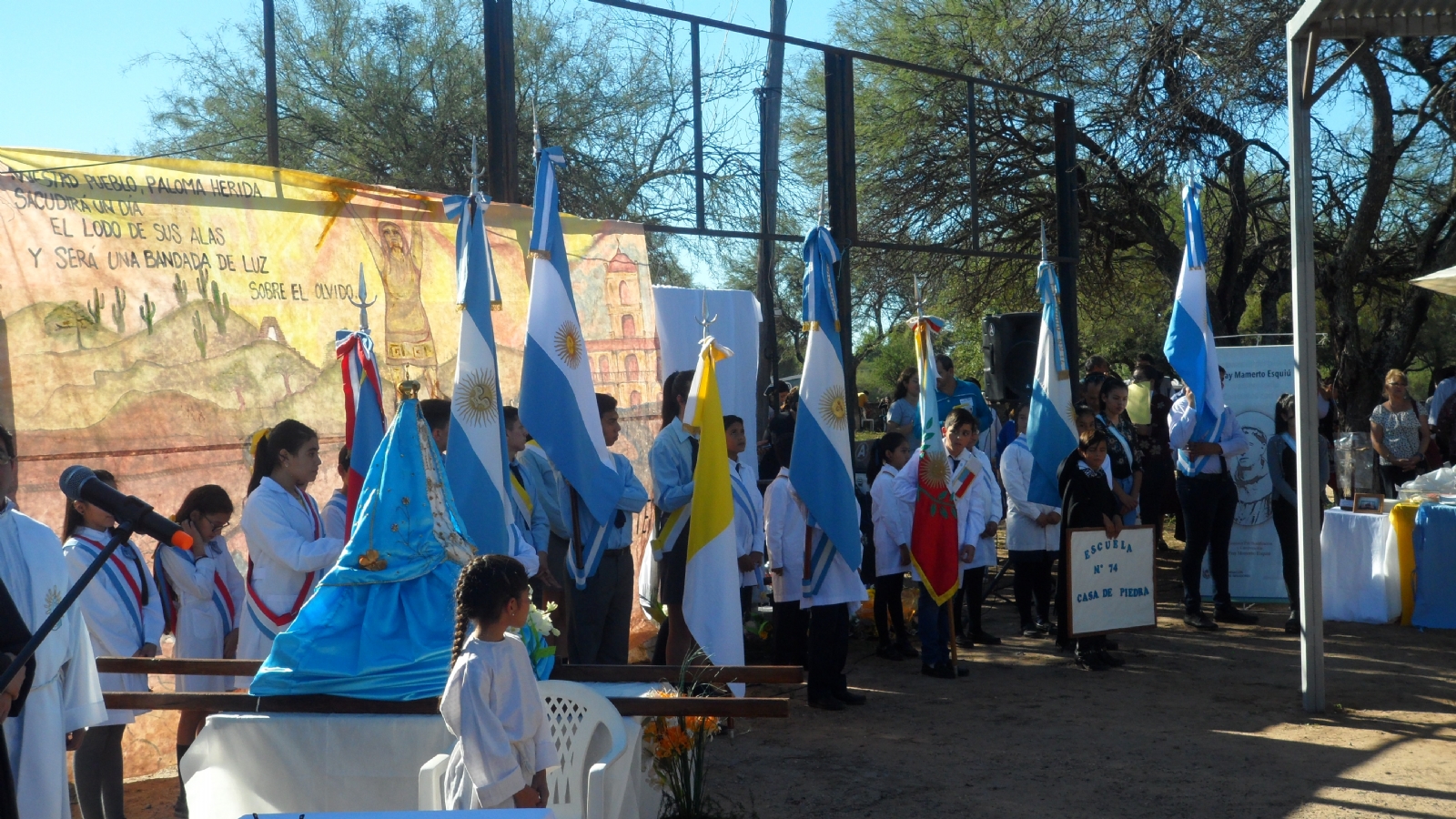 Un marco particular dieron las banderas de ceremonia de la escuela primaria y el IES Esquiú, Colegio Privado Inmaculada Concepción, Hogar Escuela Nº 74, de Casa de Piedra, y Hogar Escuela Nº 602 Fray Mamerto Esquiú, de Icaño. Además, se sumaron a esta fiesta de la fe gauchos montados a caballo.