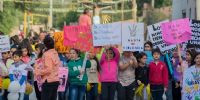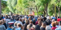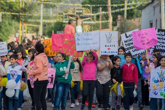 A mitad del recorrido, los niños de la catequesis interrumpieron la marcha en un simbólico corte de ruta con alegres y coloridos carteles a favor de la vida y de la familia. Luego se sumaron a la procesión que finalizó en el Santuario.
