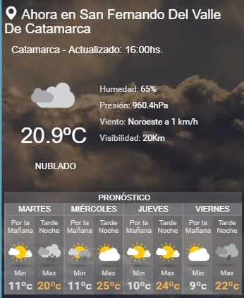 2 fotos 2 fotos martes, 15 de mayo de 2018 17:20 martes, 15 de mayo de 2018 17:20 Se avizora la posibilidad de lluvias y tormentas para hoy hacia la noche, mañana por la mañana, y el viernes a la noche.