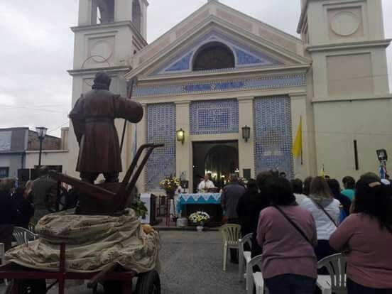 Cientos de fieles de San Isidro, provenientes de distintos puntos del departamento y de localidades vecinas se congregaron frente al templo parroquial al lado de la imagen del Santo Patrono, que fue ubicado frente al altar como un miembro más de la asamblea.