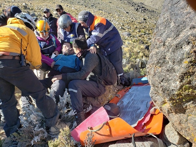 En lo que respecta al joven descompensado, identificado como Facundo Muñoz, después de su estabilización con oxígeno en La Ciudacita por parte de los bomberos voluntarios, fue traído a pulso hasta la zona de "El Tesoro", donde vehículos aguardaban por él y sus compañeros, para trasladarlos inmediatamente al hospital de Santa Maria.