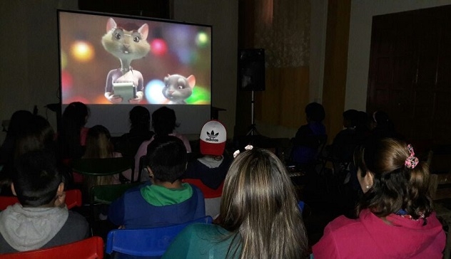 Público de todas las edades se acercó el salón de la parroquia Nuestra Señora del Rosario para disfrutar esta propuesta gratuita del Cine Móvil, que esta semana continuará su itinerario por diversas localidades proyectando en plazas, salones parroquiales y otros lugares de acceso libre.