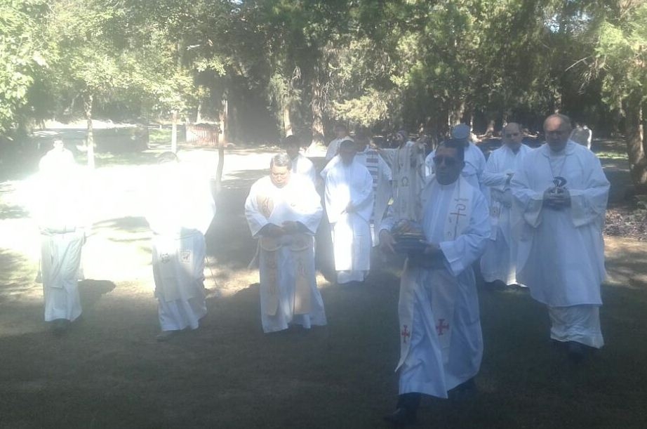 Al llegar al patio del monasterio, ubicado camino a El Jumeal, compartieron un momento de reflexión en torno a Jesucristo, Sumo y Eterno Sacerdote, en el día en que la Iglesia celebra su fiesta. Luego concelebraron la Eucaristía en la capilla.