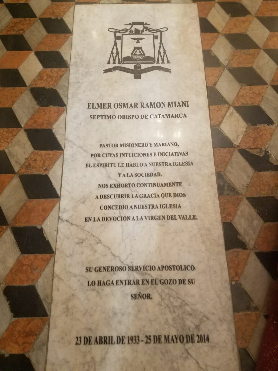 Mons. Miani brindó su servicio pastoral como Obispo de Catamarca durante 17 años. Hoy sus restos descansan a los pies de la Madre Morena Virgen del Valle, tal como fue su deseo, ya que amaba entrañablemente a la Madre de Jesús en su dulce advocación del Valle.