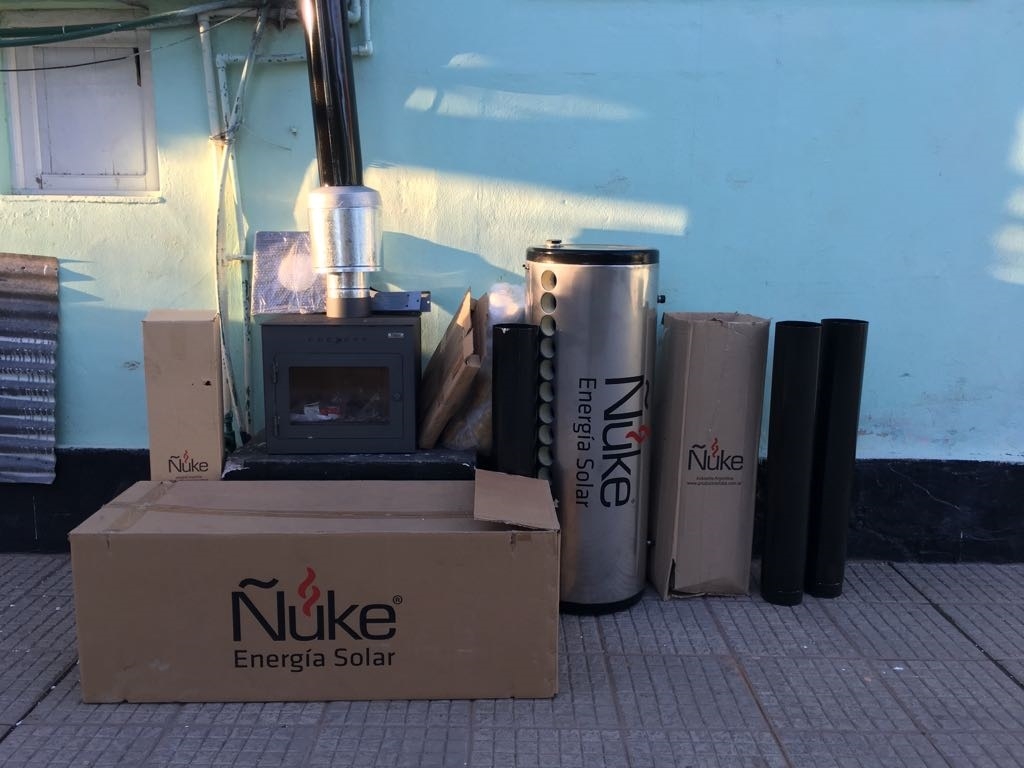 El set ecológico consta de un termotanque de 185 litros, una cocina que también funciona de estufa, junto a los paneles solares con los que funcionan dichos mobiliarios.