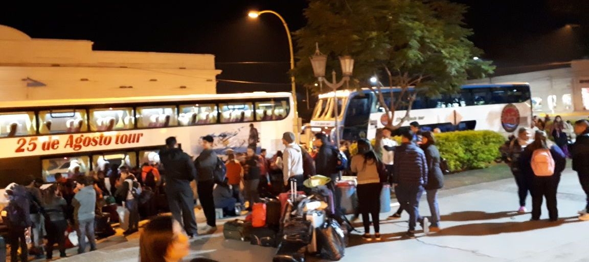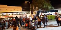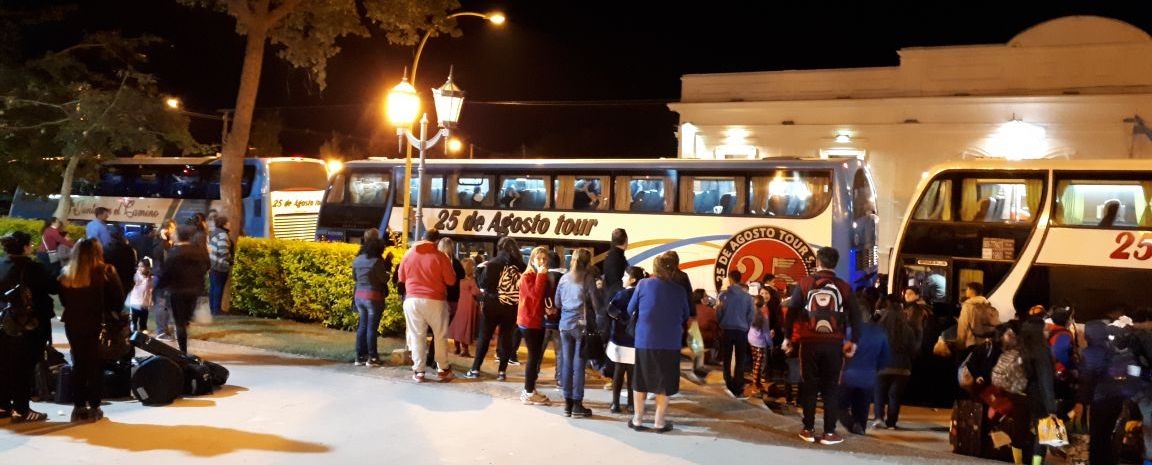 Los ómnibus y vehículos particulares se concentraron en la Plaza 25 de Agosto o Plaza de la Estación, desde donde emprendieron el camino rumbo a la ciudad rosarina.