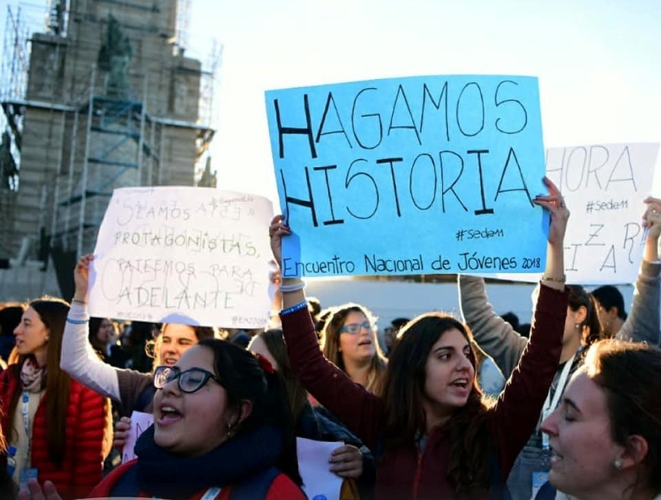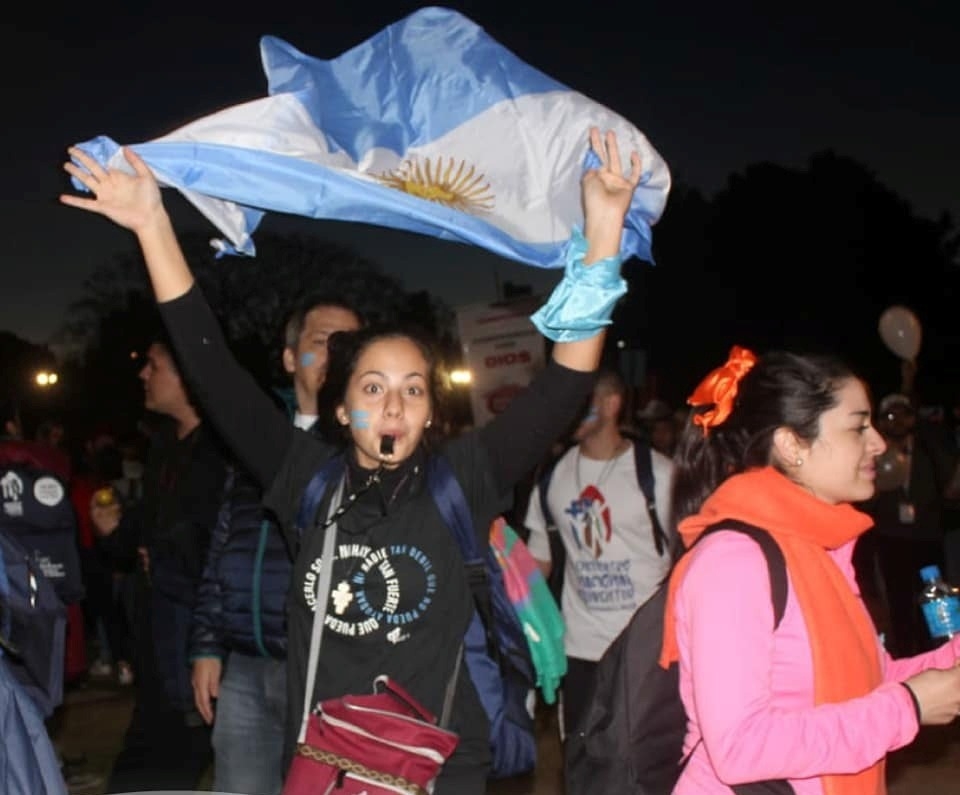 Agitando banderas argentinas, junto con las propias de sus parroquias y movimientos, la juventud se desplazó por las calles. Como fruto de los talleres realizados en las sedes por la mañana, los chicos también portaron pancartas que reflejaron lo trabajado: “Los jóvenes son de quien los ilumina y ama”, se leyó en uno.