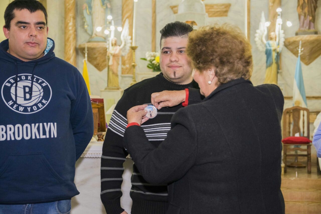 Antes de la bendición final, se hizo entrega de un prendedor con la imagen del templo parroquial a todos los que trabajaron en las gestiones y restauración de los altares de madera y pintura de las paredes, como reconocimiento a la valiosa labor realizada. El intendente y el secretario de Obras Públicas de la comuna recibieron Rosarios traídos desde Israel.