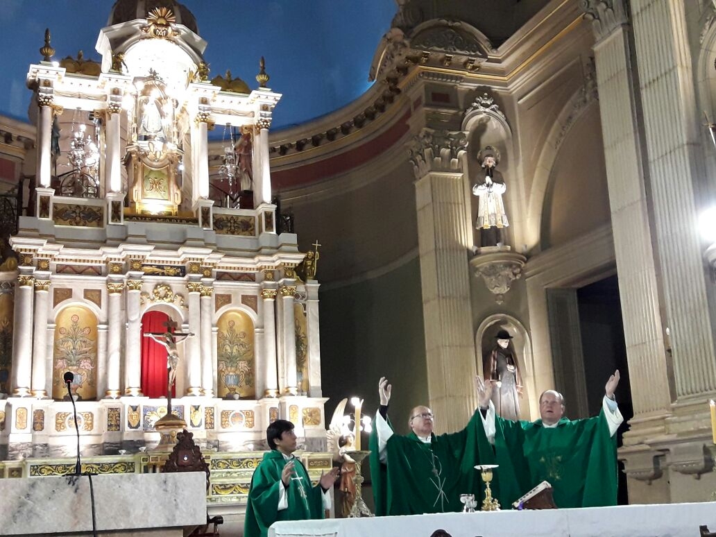 La Eucaristía fue concelebrada por el Pbro. Lucas Segura, Capellán del Santuario Mariano, y el Pbro. Francisco Urbanc, hermano del Obispo, quien llegó desde la vecina provincia de Tucumán para compartir este especial acontecimiento.