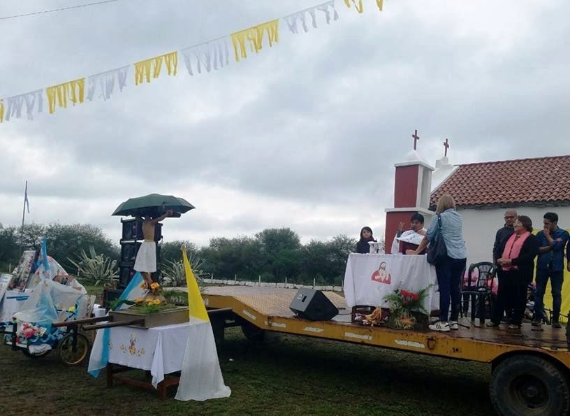 Bajo una intensa llovizna, los fieles marcharon con la antigua imagen y las de los Santos Patronos de distintas comunidades que conforman la jurisdicción de la parroquia de la Inmaculada Concepción. Comunidades enteras como Achalco, La Colonia, La Calera, Chañar Laguna, Tapso, Calera del Sauce, Frías, entre otras dijeron presente, al igual que gauchos venidos de diferentes lugares para rendir su homenaje al Señor Jesús.