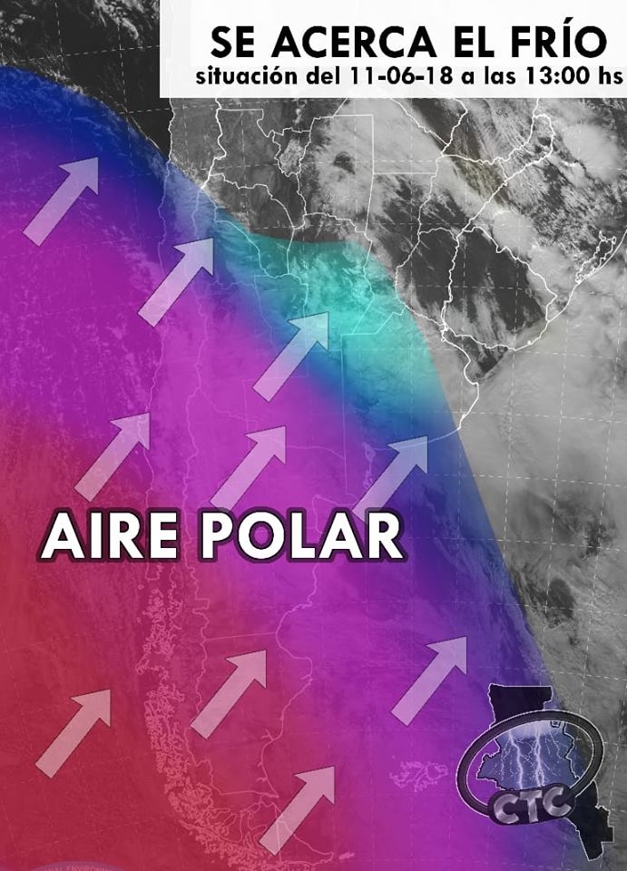 "A diferencia de la anterior, esta masa de aire será mucho mas seca, lo que hará muy difícil que se produzcan precipitaciones (las probabilidades son bastante bajas en nuestra provincia, aunque no están en un 0%, sino en un 25% en el Valle Central y en un 35% en zonas de Yungas e inmediaciones).