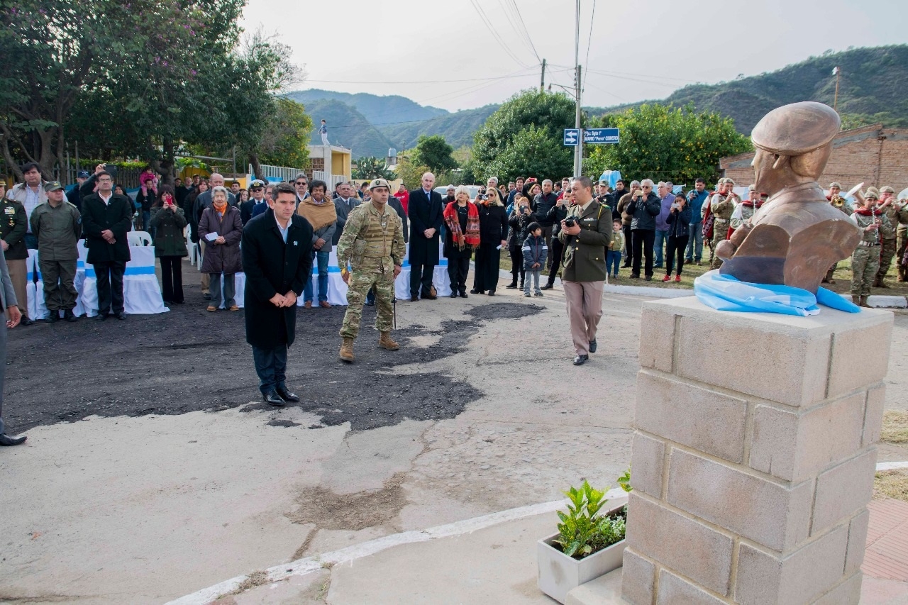 El acto se realizó en la localidad de Piedra Blanca, oportunidad en la que se llevó adelante ofrendas florales, discursos y desfile militar, con la banda de música del Regimiento de Infantería.