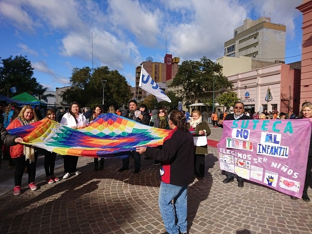 La concentración fue en la plaza 25 de Agosto y luego por calle Rivadavia se dirigieron al Paseo de la Fe, donde se llevó a cabo un acto público y se firmó un acta en la que los organismos participantes ratificaron el acuerdo de decir no al trabajo infantil.