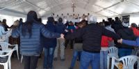 Durante el soleado mediodía sabatino, en la carpa levantada en el lugar, alegres canciones y coreografías animadas por el Coro de la Comunidad Nuestra Señora de Luján, de Buenos Aires, pusieron el clima de fiesta en los momentos previos del inicio de la misa, que fue presidida por el Obispo Diocesano, Mons. Luis Urbanc, y concelebrada por el Pbro. Antonio Bulacio, Asesor de la Pastoral de Adicciones; el Pbro. Eugenio Lissiere, sacerdote italiano residente en Brasil, y el Pbro. Carlos Rodríguez, Vicario Parroquial de Tinogasta.
