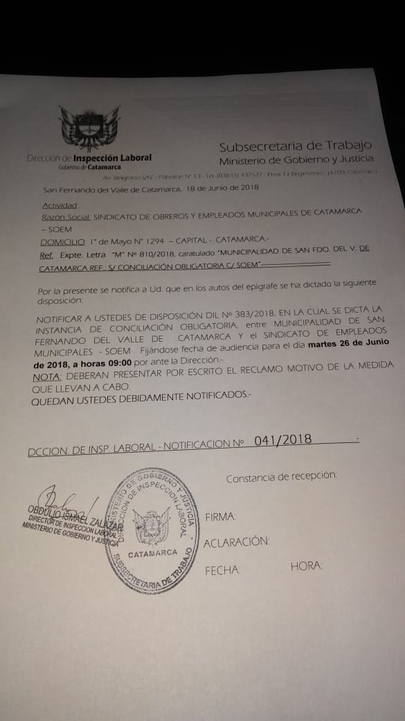 Luego del pedido de las autoridades del municipio, la Dirección de Inspección Laboral dictó la conciliación obligatoria.